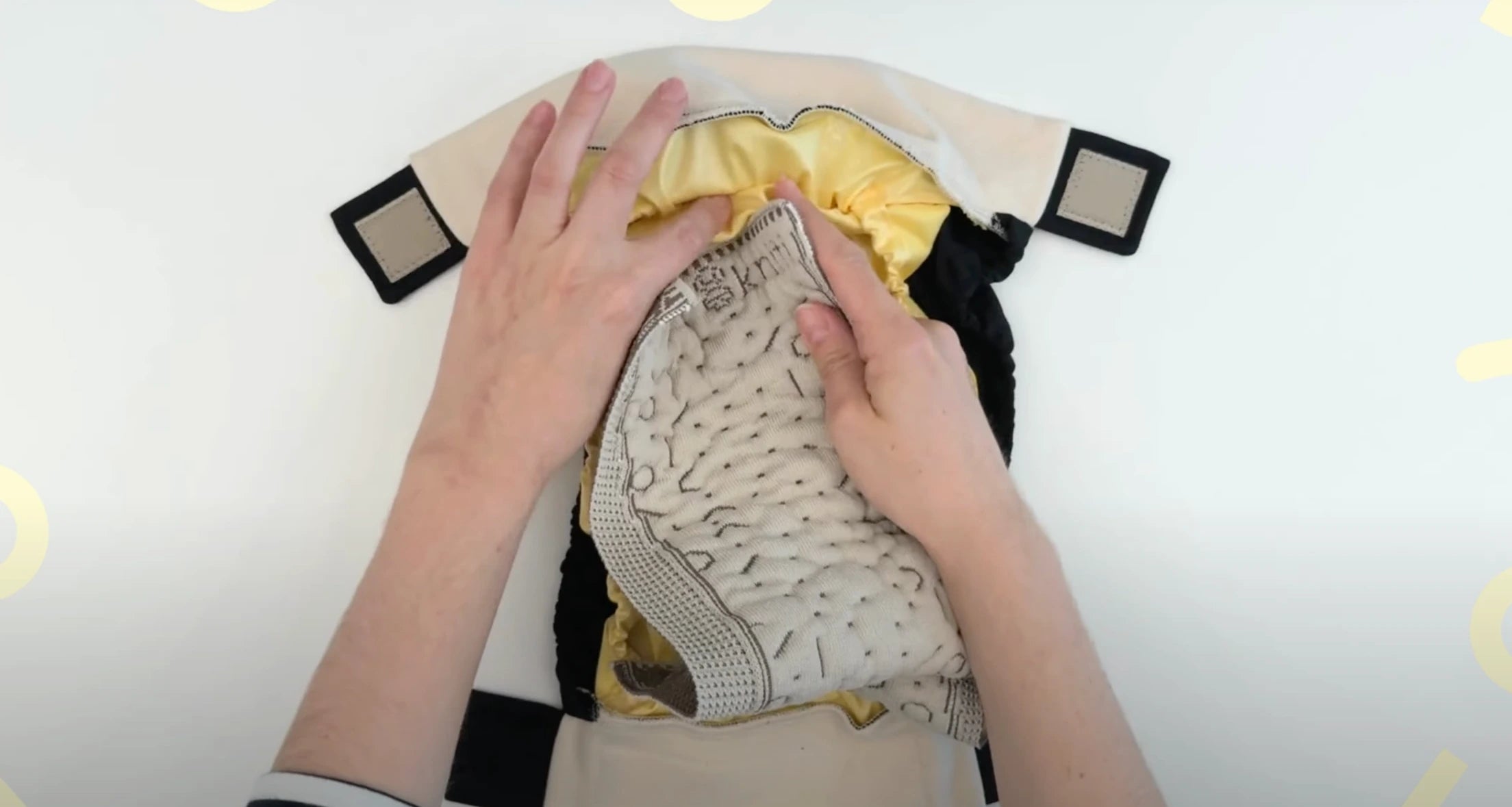 ⚠ Bitte beachte: Deine kniti ist noch nicht in der Größe auf Dein Kind eingestellt. Somit sitzt die Windel nicht perfekt und kann Dir auslaufen.
